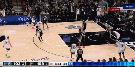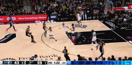迎着老狐狸的防守,45度角的甩狙3分命中,追到2分直接打停马刺。