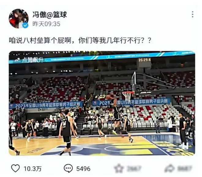 值得一提的是,冯傲曾经在社交媒体上表示,等他几年就能超过日本混血前锋八村塁。
