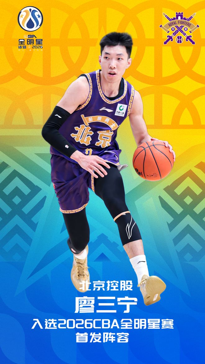 2026年CBA全明星即将于3月6日至8日在浙江省诸暨市西施篮球中心举行。今天下午,CBA官方公布了2026年CBA全明星首发球员票选结果,经过连日来球迷投票以及媒体代表投票,我俱乐部球员廖三宁成功入选首发阵容,这也是三宁第一次入选全明星首发阵容。