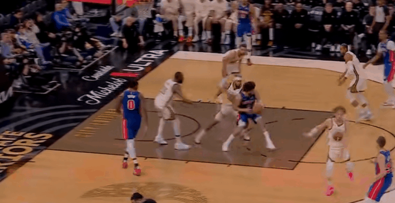 桑托斯作为标准二米锋撑住活塞锋线,梅尔顿除了攻防两端,还提供了点吉米缺阵后,勇士紧缺的持球。反过来坎宁安不在时,活塞靠邓肯·罗宾逊策动:毕竟球队只有他脑子清醒,且兼备持球引力。詹金斯一旦被拿走顺下,便只能强突;艾维复出以来手感也有点靠天吃饭。到最后,阵地战一度靠哈里斯和奥萨尔杀伤。