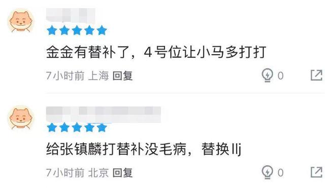 作为对比,曾在此前入选国家集训队的刘礼嘉,本场虽然获得了首发位置,但在8分钟的上场时间里,没有任何出手,只拿到0分0篮板1助攻。而马典成在本赛季并没有获得什么机会的情况下,此番向卢伟强势证明,也引得球迷直言:替换刘礼嘉。