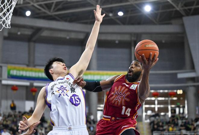 2月7日,北京控股队球员里勒(左)在比赛中上篮。新华社记者 贝赫 摄