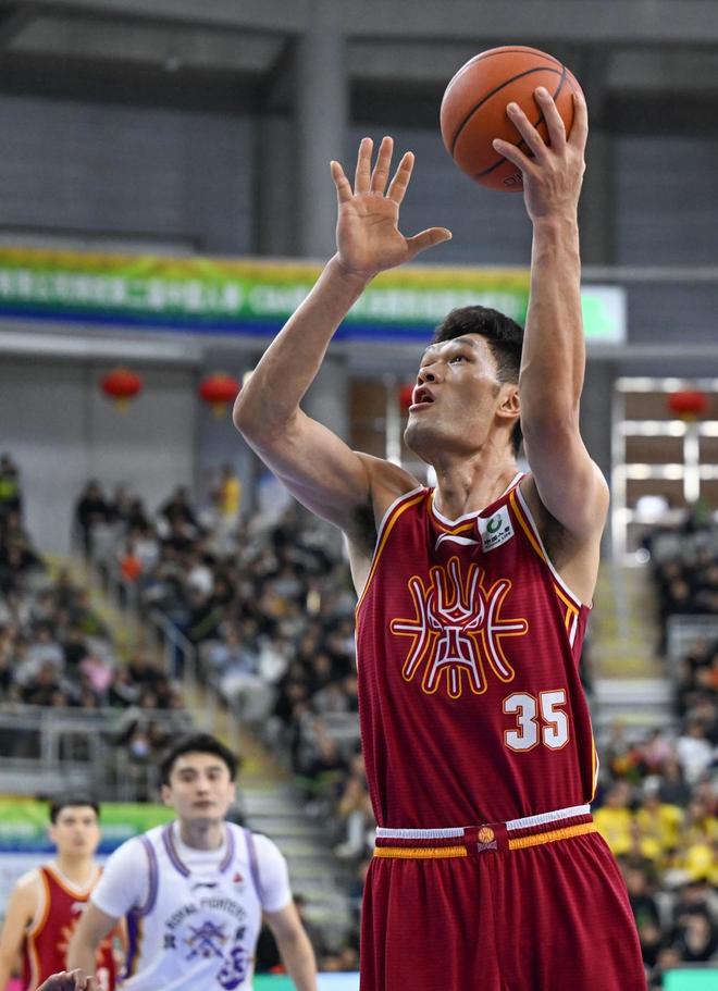2月7日,山西汾酒队球员葛昭宝在比赛中投篮。新华社记者 贝赫 摄