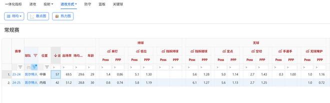 健康波神能力还是很不错的,太过久远的数据没有参考价值,只看他在凯尔特人的两个赛季。平均每个赛季出战50场比赛,不到30分钟出场时间要完成至少6个持球终结回合,其中有5个是低位终结。哪怕身体脆皮对抗一般但波神依旧高效,低位硬凿每回合能拿到至少1.2分。得分效率哪怕和约基奇这样的低位杀器相比也毫不逊色。