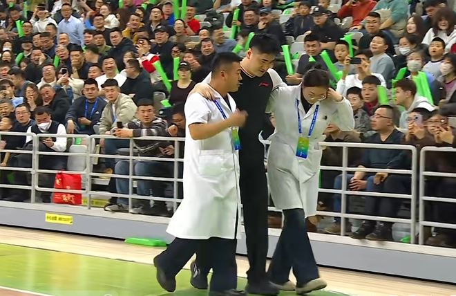 CBA赛场上,发生了罕见的一幕!在比赛中,34号裁判员跟腱拉伤,被医生搀扶离场,无奈之下,只留下2个裁判工作……