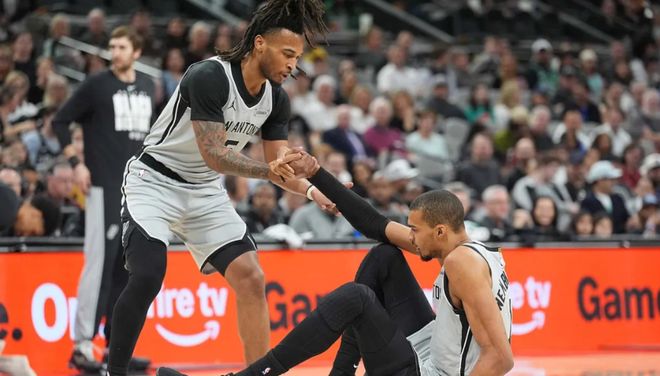 更可怕的是,马刺的天赋还藏在替补席里。2025年榜眼秀迪伦·哈珀,今年才19岁,本该是球队重点培养的核心,却因为马刺人才济济,只能在有限的时间里发光发热。本赛季他场均仅出战21.4分钟,就能贡献10.7分3.3篮板3.5助攻0.9抢断,投篮效率极高。对阵独行侠,他8投5中得到11分4篮板5助攻;对阵湖人,8投6中、罚球3中3,轰下15分3篮板6助攻1抢断,组织稳健、得分高效、防守积极。说白了,如果马刺像独行侠培养弗拉格那样,给哈珀足够的上场时间和球权,场均20+对他来说根本不是难事。一个19岁的榜眼只能打替补,这样的天赋深度,全联盟找不出第二支球队,马刺的未来,根本看不到上限。