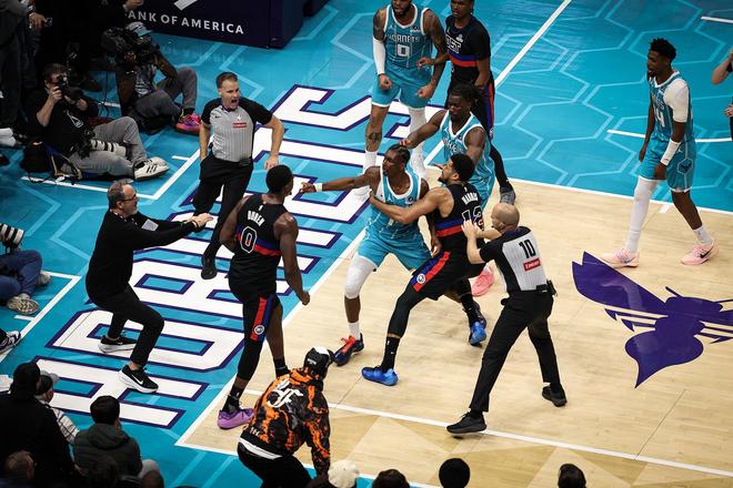 北京时间2月12日,NBA过去一夜好多大消息,4人禁赛17场&损失156万,23岁9号秀被裁,火箭旧将签约奇才,下面咱们具体看看。首先说两笔罚单,一个是活塞和黄蜂的大冲突罚单,那次冲突想必大家都知道了,迪亚巴特和杜伦打架,随后布里奇斯和斯图尔特加入战局,而且斯图尔特是从板凳席跑过去加入的,罪加一等,最终经过3天的斟酌,联盟开出巨额罚单,具体如下: