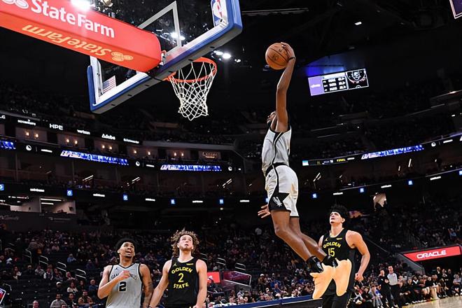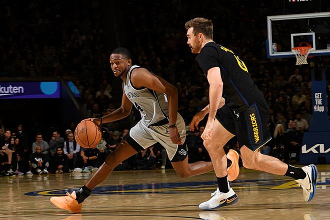 本场比赛中,马刺的先发控卫达龙-福克斯(De'Aaron Fox)的表现算得上是令人刮目相看。福克斯全场出场32分16秒,投篮16中11,三分线外5中3,罚球2中2,得到了全场最高分27分外加8助攻3抢断的数据,还有2次失误和3次犯规,正负值为+6。福克斯在进攻端展现出了自己全面的得分能力,他的突破能力相当不错,他在外线投篮方面的表现也是值得肯定的,他还展现出了不俗的传球能力和组织能力。福克斯在比赛前3节拿下了23分,帮助球队在进攻端稳住了局面,并且为球队在最后一节的大翻盘奠定了基础。福克斯在防守端的表现其实也是相当不错的,他的个人防守能力也是值得肯定的。总体来看,福克斯的表现相当出色,要不是有他在攻防两端的努力,马刺未必能够这么顺利地拿下胜利。