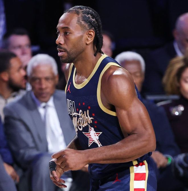 对阵世界队一战伦纳德不仅拿到单节31分还命中了后撤步的准绝杀,当开启战神模式时他的确非常炸裂。本赛季也是小卡生涯最高光的一个赛季,他在常规赛已经连续33场比赛拿到20+生涯新高,快船队史并列第三。