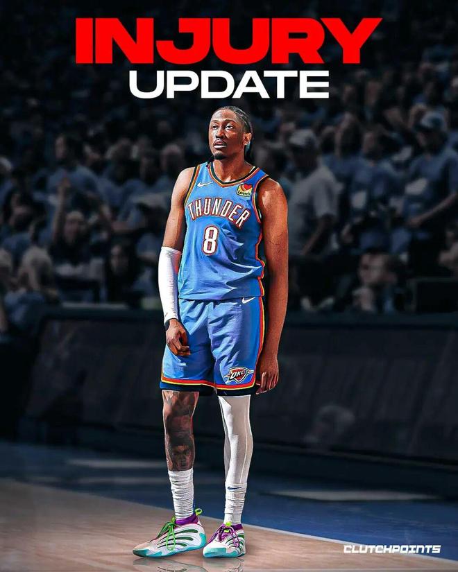 就在不到一个月前,雷霆对阵热火的比赛,杰威在一次突破中拉伤了右大腿,随后在医务人员陪同下返回更衣室。