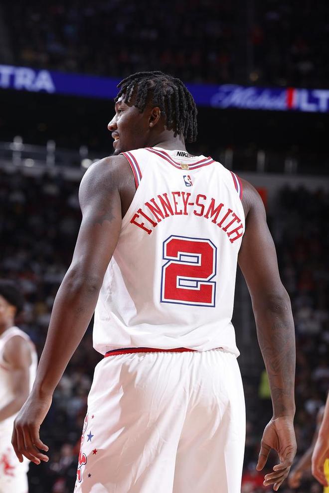 但尴尬的是,当这些火箭悍将个个手感火热,怎么投怎么有的时候,有一个人却依旧身处冰窖,手感全无,那就是火箭前锋芬尼·史密斯,全场比赛,史密斯出战20分钟,4投1中只拿到3分4篮板,领到4次犯规,正负值甚至是全队唯一为负的,基本上攻防两端的作用都非常有限。更重要的是,这不是史密斯偶尔的发挥失常,而是整个赛季的常态,赛季至今,芬尼·史密斯在火箭场均出战16.6分钟,只能得到3.1分2.5篮板,投篮命中率只有30.5%,三分球命中率更是糟糕的24.6%,曾经被视为联盟顶级3D的他,如今真的连饮水机都快守不明白了。