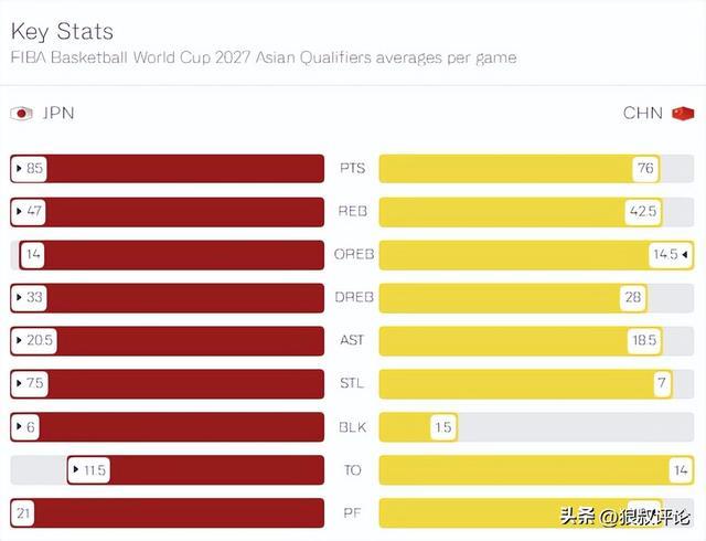 FIBA更新中国队vs日本数据前瞻:场均得分篮板等重要数据完败日本