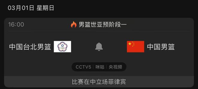 根据赛程安排,3月1号16点00分中国男篮将在菲律宾的马尼拉,对阵省队中国台北男篮;届时,CCTV5将全程直播。考虑到中国男篮刚在客场赢下日本男篮,还是得将赢球的经验吸收好,在一些时刻继续使用三后卫的打法,才能将我们的优势延续下去。