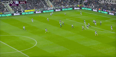 第19分钟,布恩迪亚远射破门,维拉客场1-0领先纽卡