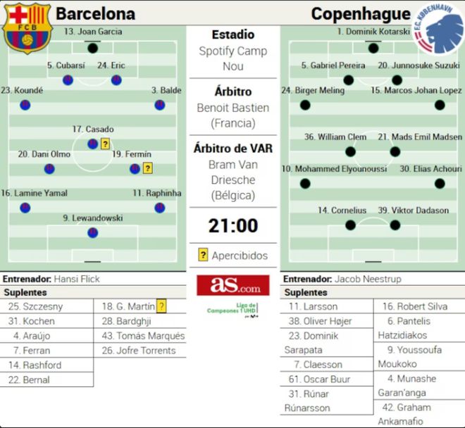巴萨即将在Spotify诺坎普球场迎来与哥本哈根的关键欧冠对决。