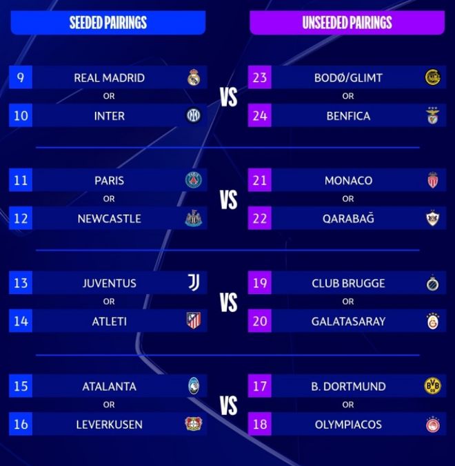 左侧种子队拥有先客后主的优势,附加赛首回合时间预计在2026年2月17和18日,次回合在2月24和25日。