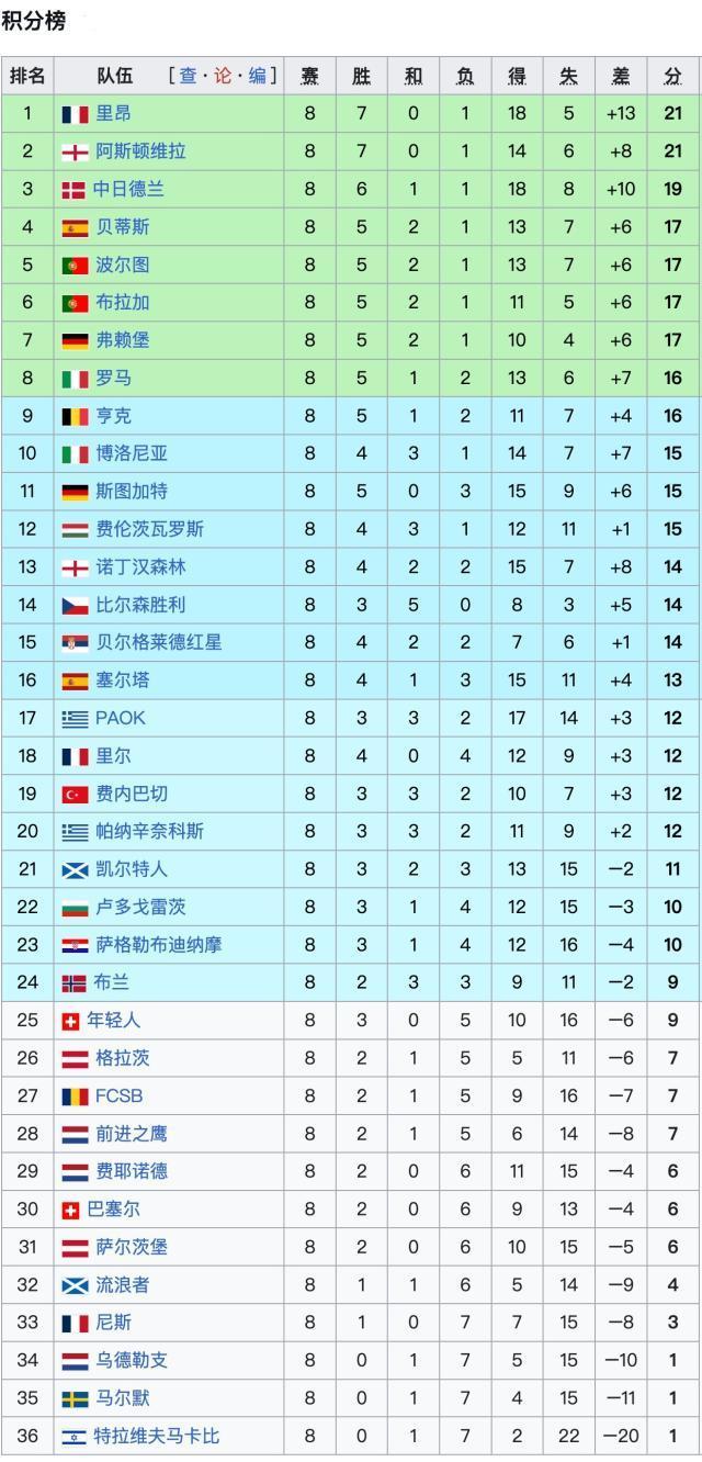 今晨,欧联杯联赛阶段第8轮即最后一轮战罢,排名座次及晋级球队尘埃落定。里昂、阿斯顿维拉、中日德兰、皇家贝蒂斯、波尔图、布拉加、弗赖堡、罗马分列前8名,直接晋级16强淘汰赛。其中五大联赛各有一队进入前八,葡超继续强势,有波尔图和布拉加两队。