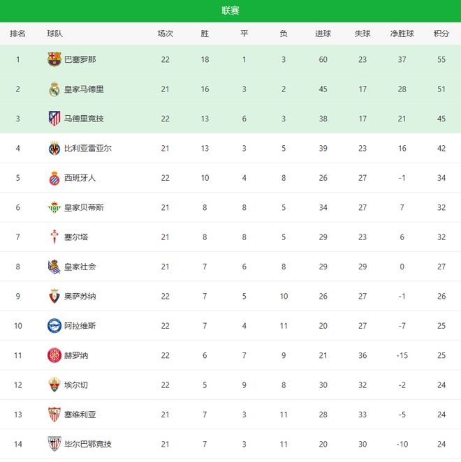 北京时间2月1日凌晨,西甲第22轮重燃战火,巴萨客场3-1击败埃尔切,亚马尔爆走造2球,豪取各项赛事4连胜;马竞0-0爆冷被莱万特逼平,亿元先生阿尔瓦雷斯又哑火,西蒙尼争冠基本没戏;比利亚雷亚尔2-2战平奥萨苏纳,虽然丢分,但是斩获下赛季欧冠席位还是问题不大,这一轮结束后,巴萨继续稳居榜首,马竞和比利亚雷亚尔双双掉队,真正还能紧咬的,只剩下皇马。