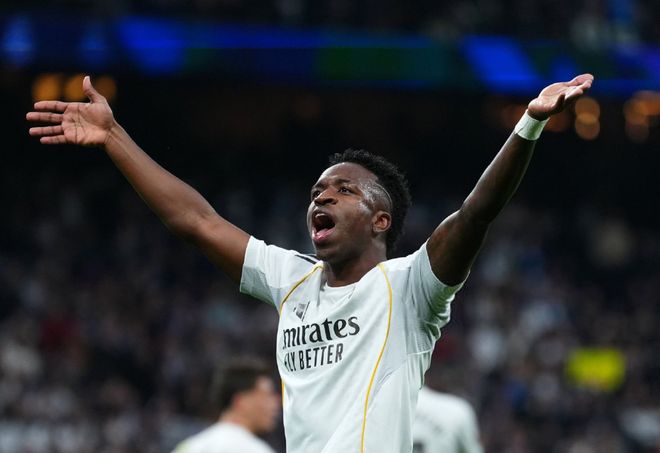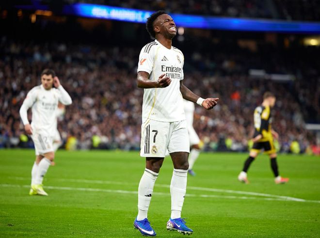 比赛刚刚开打10分钟,皇马就遭遇重创,中场核心贝林厄姆在没有对抗的情况下受伤,随后泪洒现场,阿韦洛亚只能用迪亚斯将其换下,不过3分钟之后,皇马就打破了场上的平衡,维尼修斯左路一挑三,连续晃动创造出起脚空间后,直接兜射建功,打破了长达13轮的西甲进球荒,帮助皇马取得了1-0的领先。