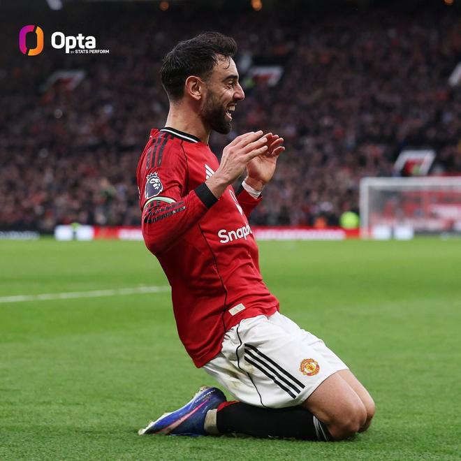 在与热刺的英超比赛中打入一球,布鲁诺-费尔南德斯曼联生涯已直接参与200球,仅用了314场,队史英超时代仅次于鲁尼。