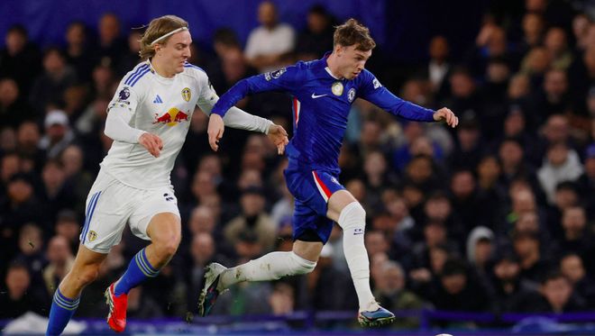 第24分钟,切尔西的连续传球没有感受到利兹联带来的任何压力,帕尔默送出妙传,佩德罗获得单刀机会,面对出击的门将,轻巧搓射破门。