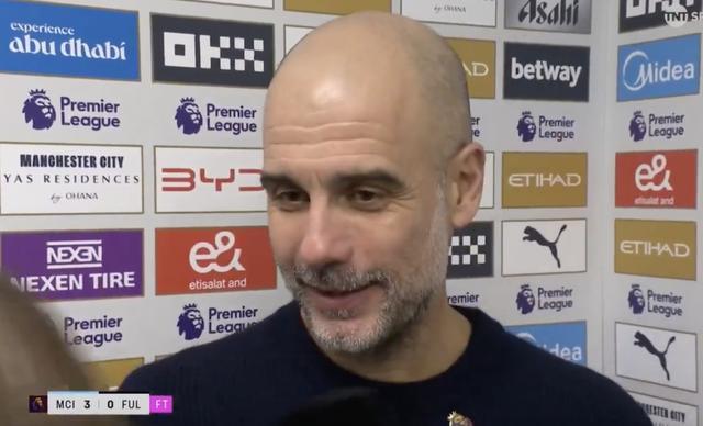 英超第26轮,曼城主场3-0击败富勒姆,赛后,曼城主帅瓜迪奥拉接受了TNT体育的采访。