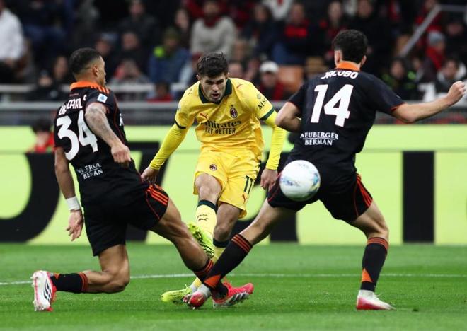 当然,输球的国米也还是有好消息。同样在今天凌晨,意甲第24轮上演了一场补赛,排名第2的AC米兰主场1-1战平来访的科莫。上半场,米兰门将迈尼昂出现超级巨大失误,直接将球传给尼科帕斯,后者笑纳大礼破门为客队首开纪录。下半场第64分钟,亚沙里长传制导,莱奥精妙挑射破门扳平比分。随后的时间,双方均无建树。1-1的比分也保持到了终场。