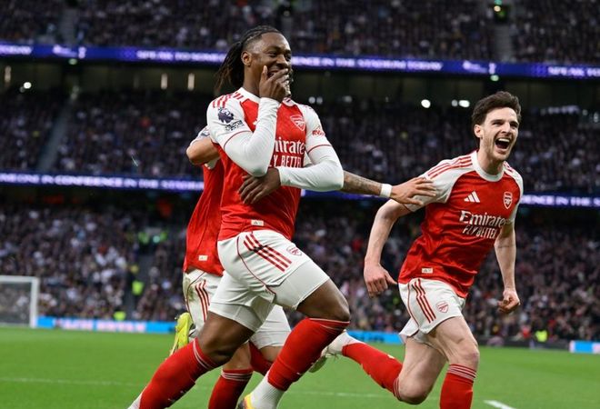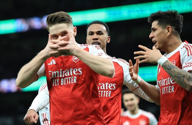 第59分钟,萨卡在禁区右侧的射门被门将扑了出去。1分钟后,阿森纳再次进球。萨卡单刀射门被挡出。埃泽得到皮球,他冷静低射空门得手,梅开二度!比赛就此失去了悬念。之后热刺接连派上索兰克和里沙立松。第94分钟,哲凯赖什再进一球,梅开二度。最终,阿森纳4-1击败热刺。阿森纳总积分达到61分,在先赛一场的情况下领先曼城5分。