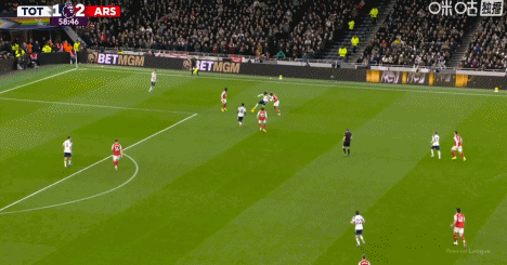第47分钟,下半场梦幻开局!哲凯赖什远射破门!阿森纳客场2-1领先热刺!